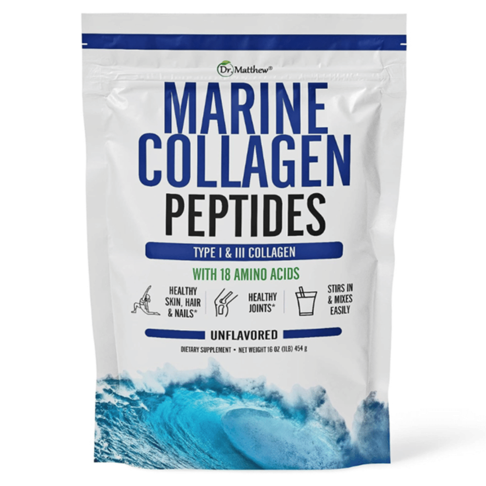 Dr. Matthews Marine Collagen Powder from Wild Caught Fish is flavorless. It contains no artificial flavors, sugar, sweeteners, preservatives, fillers or dyes. Made without dairy or gluten. It is free of heavy metals (including mercury) and microbial pathogens (tested twice by independent labs). Each packet contains 16.0 ounces of type I and III collagens, providing a generous amount of collagen supplementation powder for regular use.