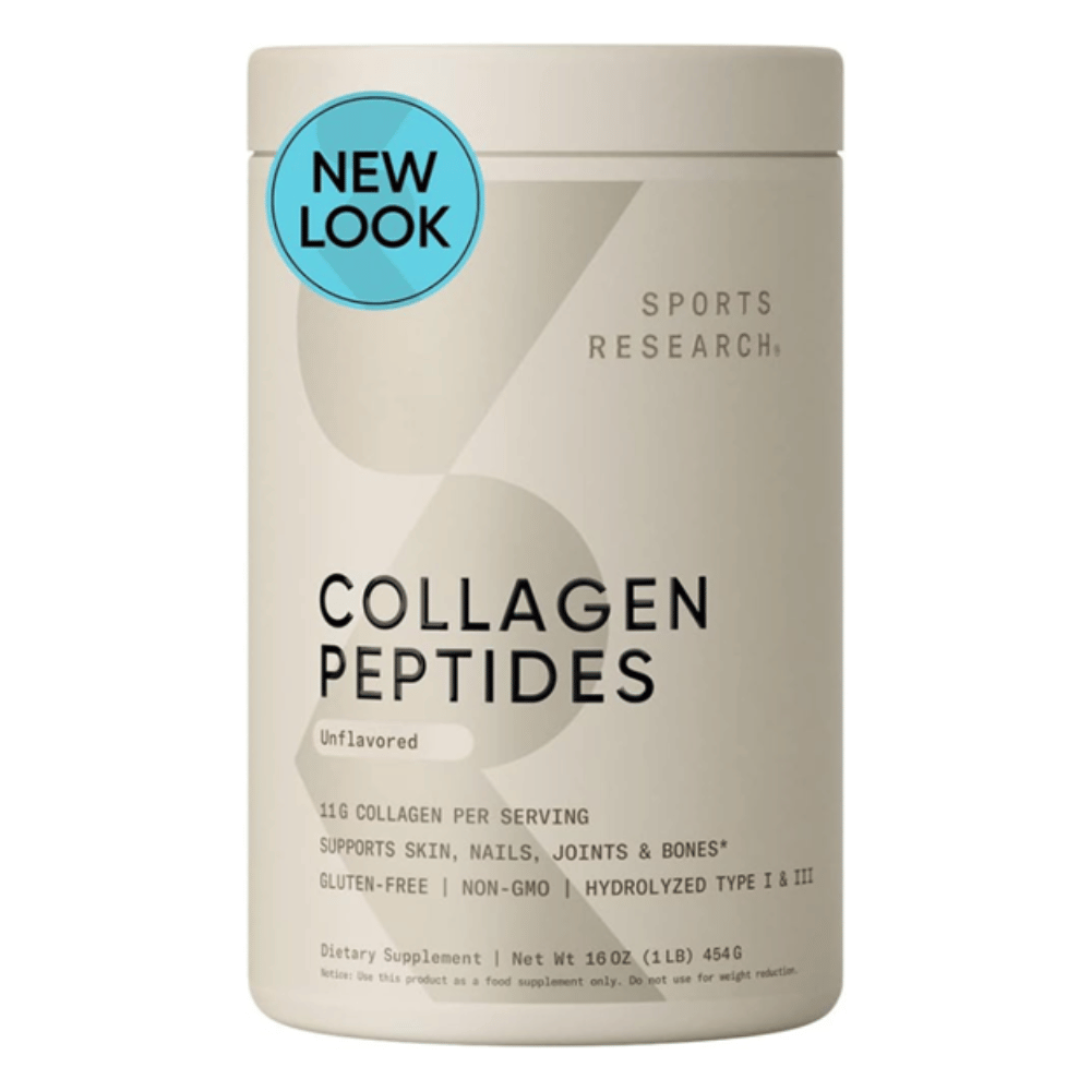 Sports Research Collagen Peptides uses type 1 and 3 hydrolyzed bovine collagen peptides, including glycine, proline, and hydroxyproline. It has 11 grams of collagen peptides per serving to support healthy skin, nails, hair and joints. It is unflavored so it mixes well with anything you put it in.