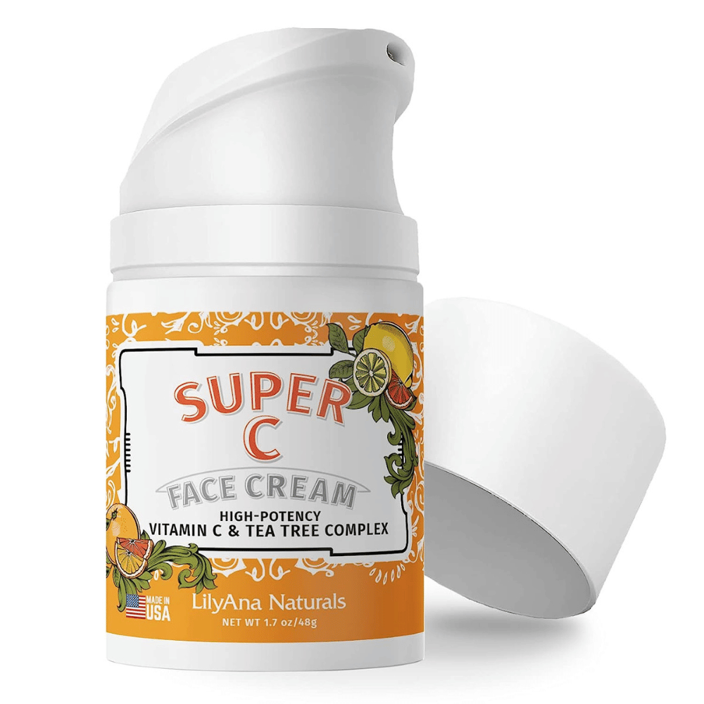 This vitamin C-rich facial cream from LilyAna Naturals provides a highly effective yet gentle solution for brightening tired looking skin and reducing hyperpigmentation. Containing Ascorbyl Palmitate form of vitamin C, it promotes an overall radiant complexion with consistent use. The formula also includes powerful antioxidants such as green tea extract and vitamin C and E which work to protect the skin from environmental damage. The addition of anti-bacterial tea tree oil and hydrating aloe vera gel aid in soothing inflammation-prone skin without over-drying. Users appreciate the thin, non-comedogenic texture which absorbs quickly into the skin to avoid pilling or balling up under sunscreens or makeup when applied.